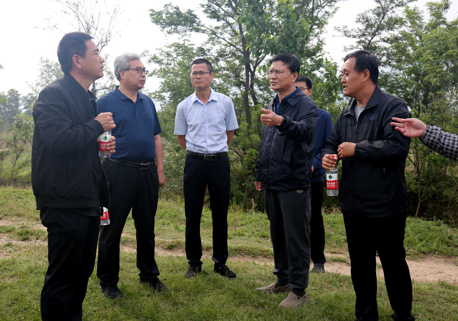為加快推進(jìn)鴨子池水生態(tài)綜合提升工程施工進(jìn)度,5月20日上午,公司董事長崔作銘帶領(lǐng)公司相關(guān)人員,會(huì)同市水務(wù)局、設(shè)計(jì)單位、項(xiàng)目公司、項(xiàng)目部就環(huán)湖路工程、泵站排水壓力管線工程,步行從鴨子池泵站沿堤壩逐段實(shí)地查看,現(xiàn)場(chǎng)辦公,針對(duì)施工中所存在的問題,與設(shè)計(jì)單位、項(xiàng)目公司相關(guān)人員現(xiàn)場(chǎng)商議,交換思路,協(xié)商方案。